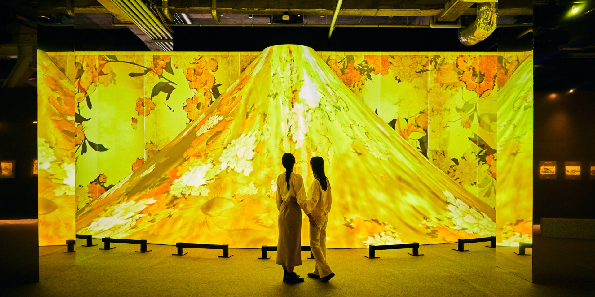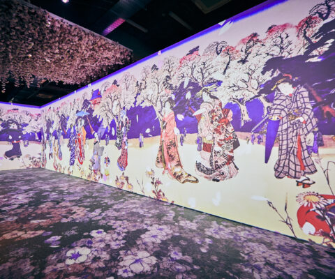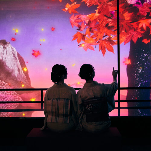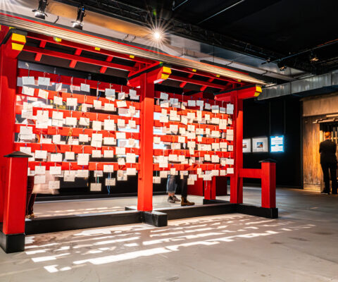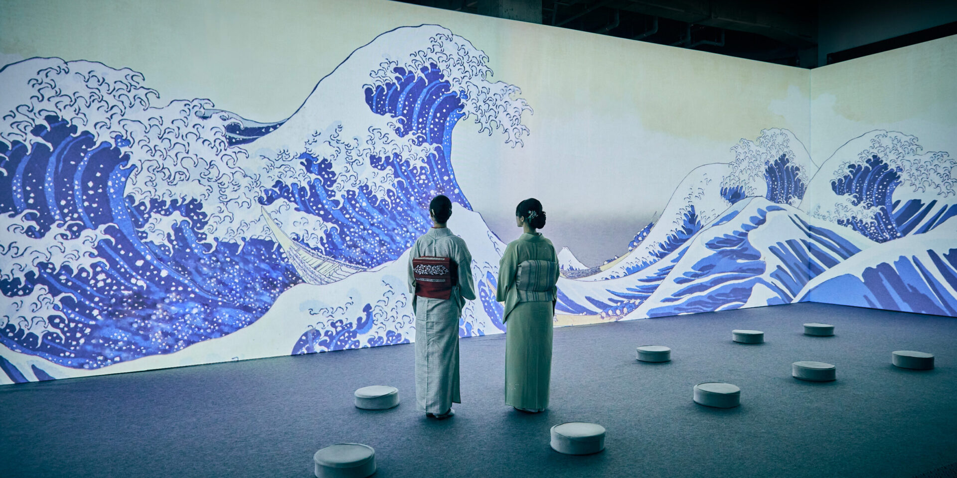 Walk through the iconic torii gates, wander the yokochō (narrow alleys filled with small restaurants and izakaya), attend a traditional tea ceremony, explore a typical capsule hotel, discover traditional fabric stalls, sit at a manga artist’s desk, and let yourself be swept away by the poetry and magic of ukiyo‑e prints — including Hokusai’s legendary Great Wave — brought to life through monumental digital installations, before recharging at the foot of the mythical Mount Fuji.